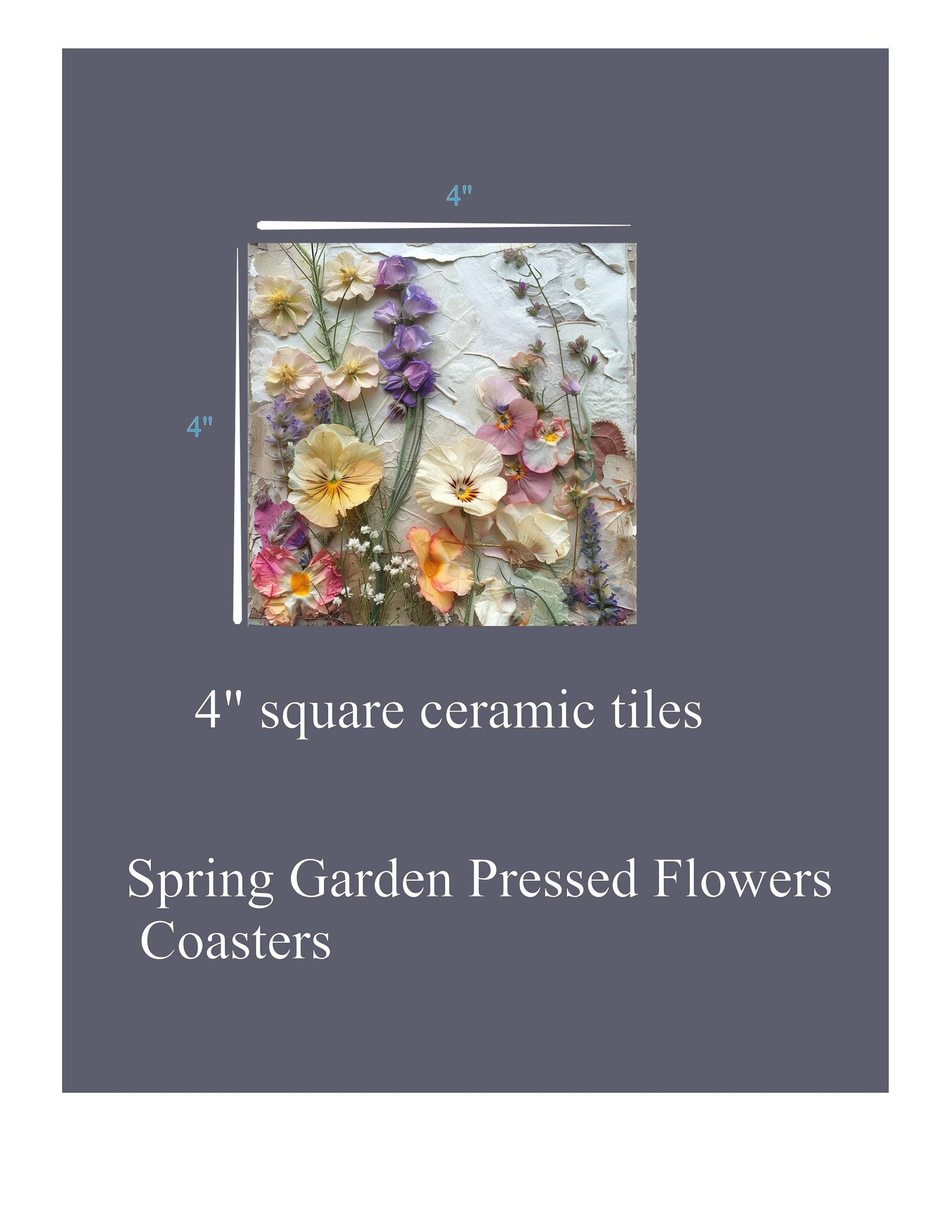 Imagine a set of beautiful coasters featuring vibrant spring flowers, expertly designed to capture the essence of a blooming garden. Each coaster showcases a unique arrangement of pressed flowers, meticulously crafted to create a stunning 3D effect. The delicate petals and intricate details are highlighted, making each piece a work of art.