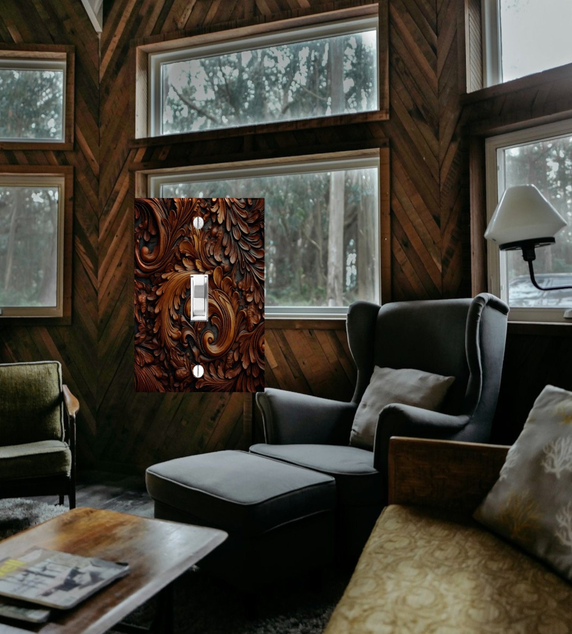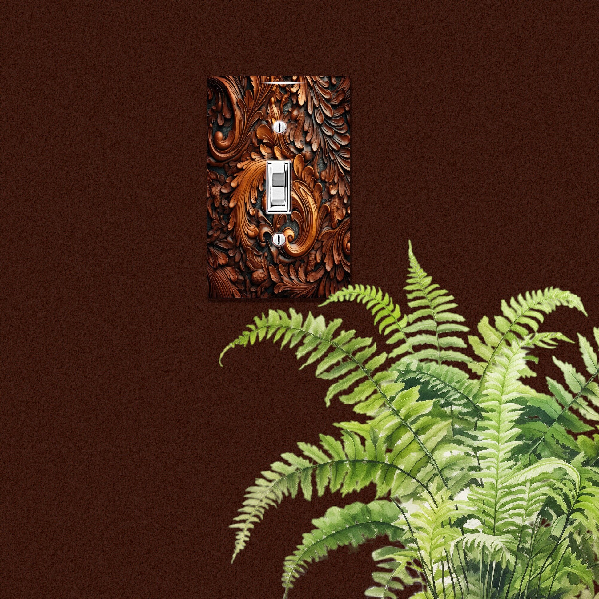 3D Tooled Leather Print Switchplate, Dark Tooled Leather Switch Covers, Rustic Leather Outlet Cover, Great Gift for Men, Wall Plate Art