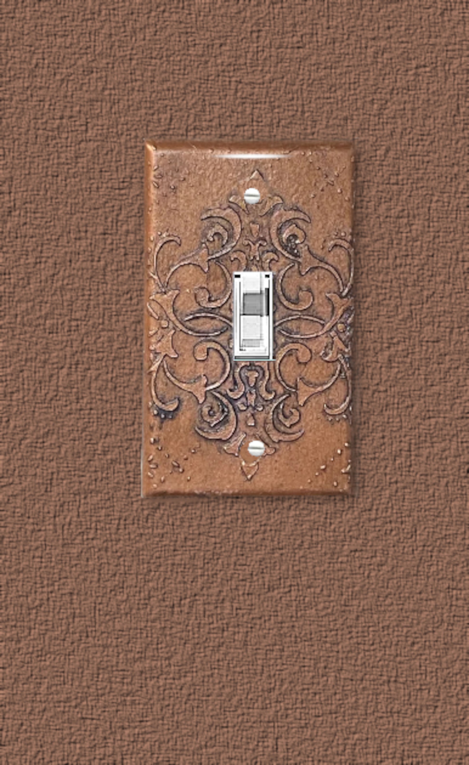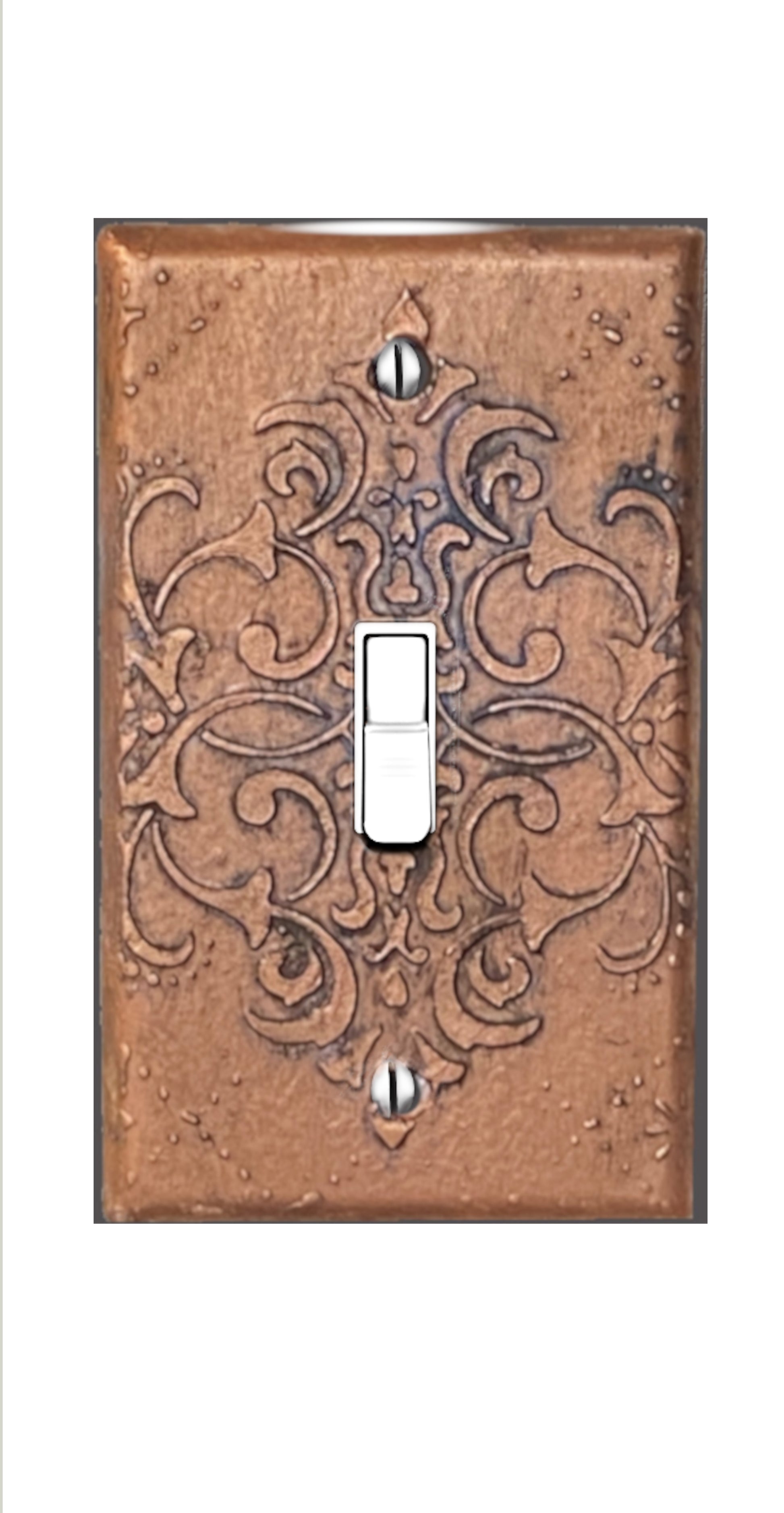 Baroque Switch Plate Mixed Media Outlet Cover, Artisan 3D Designed & Sculpted, Single Toggle Copper Switch Plate Cover, Outlet Wall Plate