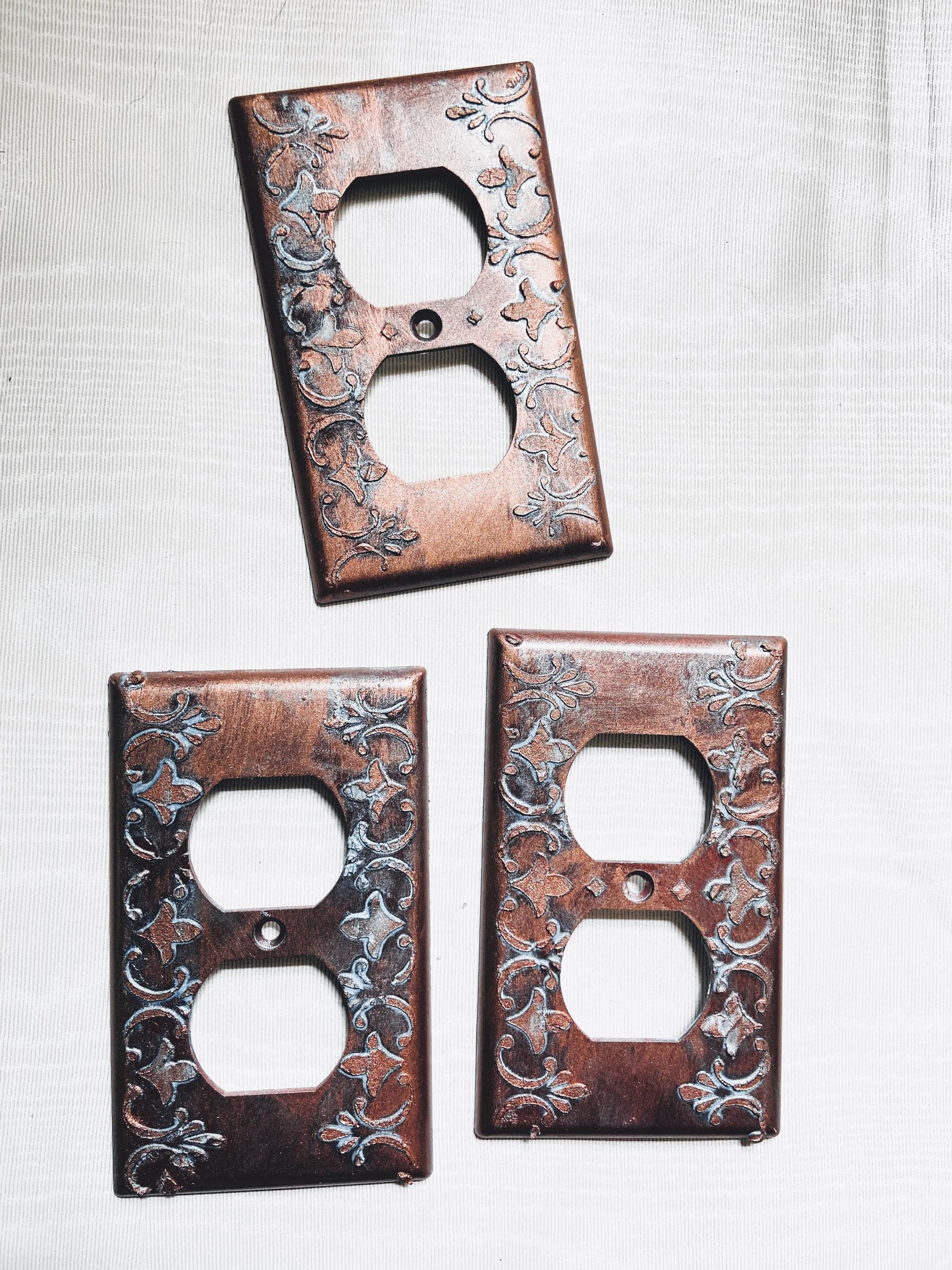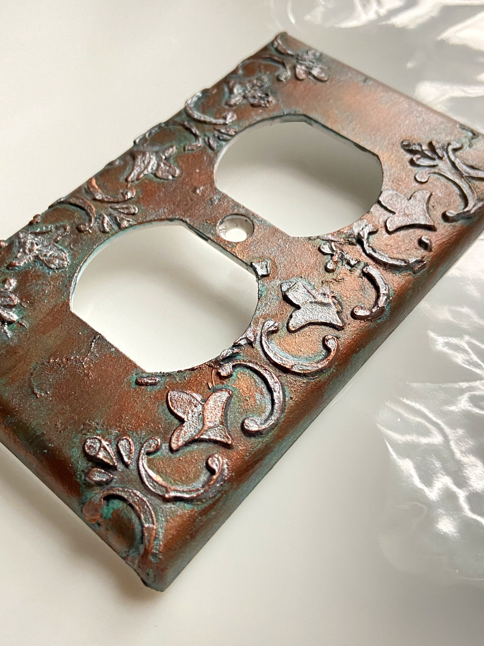 Baroque Switch Plate Mixed Media Outlet Cover, Artisan 3D Designed & Sculpted, Single Toggle Copper Switch Plate Cover, Outlet Wall Plate