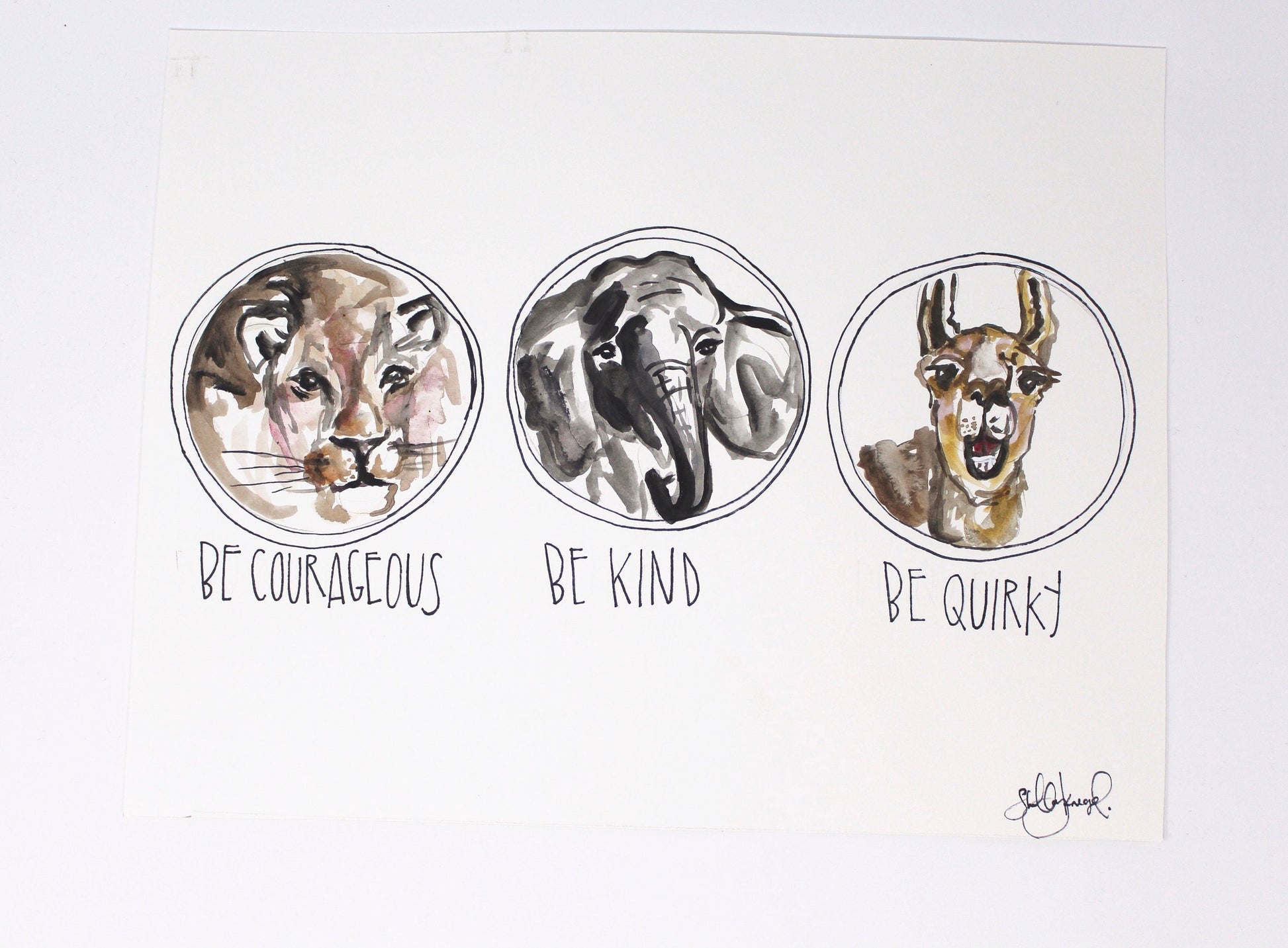 Be Kind, Be Courageous, Be Quirky Art Print -11x14 in, Animal Art, Baby Room Decor, Nursery Wall Art