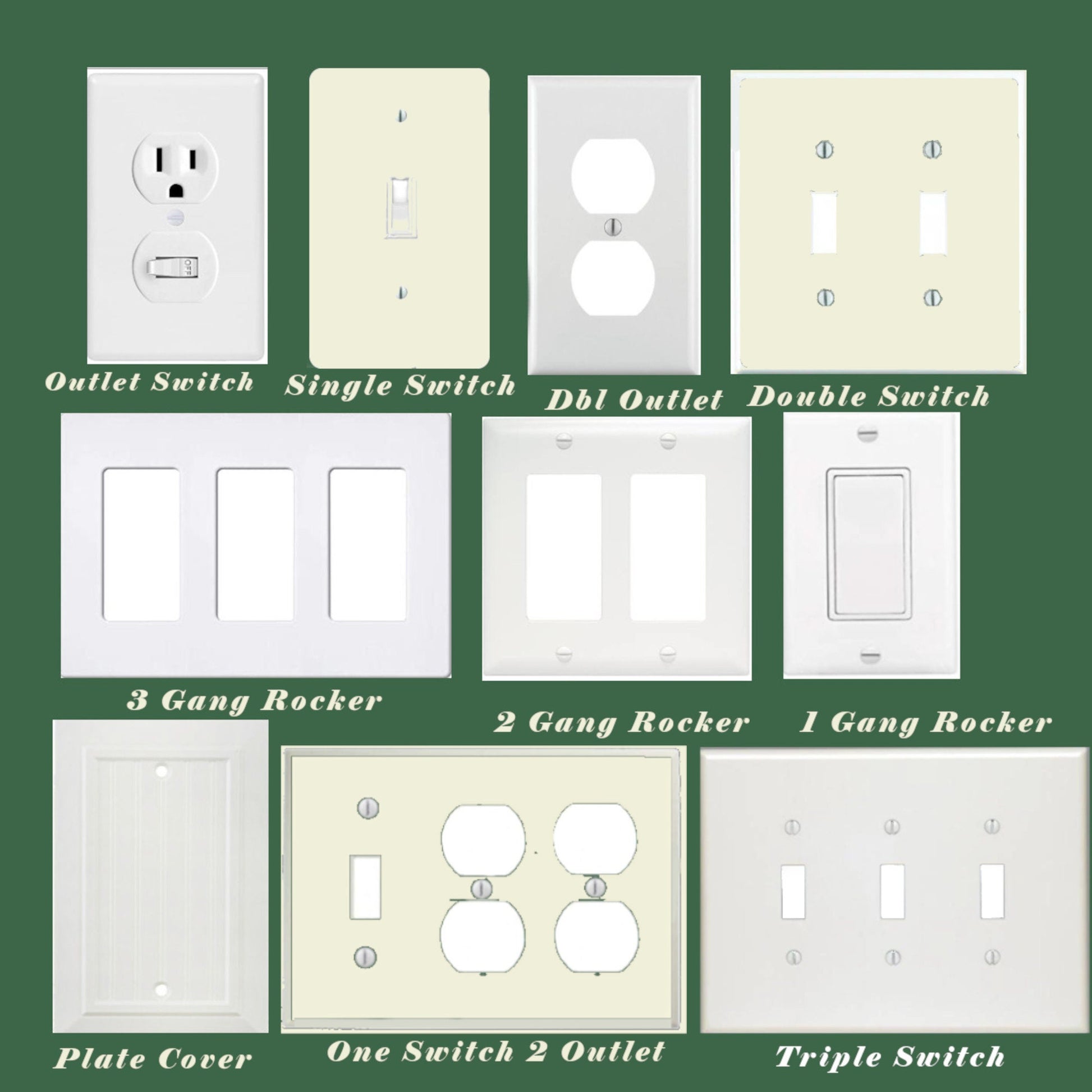 * I offer most commonly used switchplate styles, including toggle, outlet cover, rocker (decora) blank wall plate cover, and coax - in single width, double width, & some triple and quad widths. (Choose from Options)