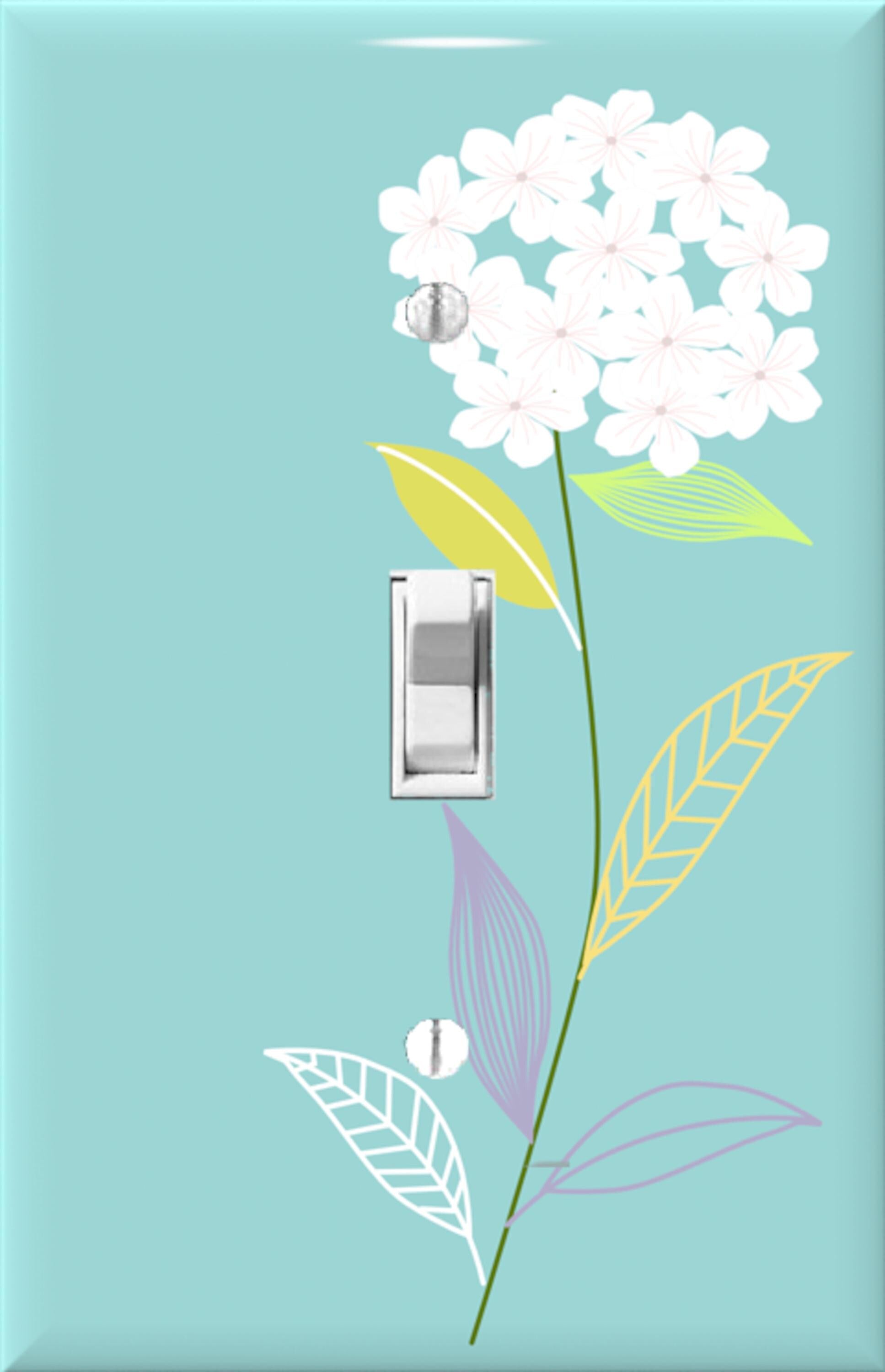 Floral Light Switch Cover - White Hydrangea on Aqua Background - Decorative Switch Plate for Home, Nursery, or Bathroom - Outlet Cover