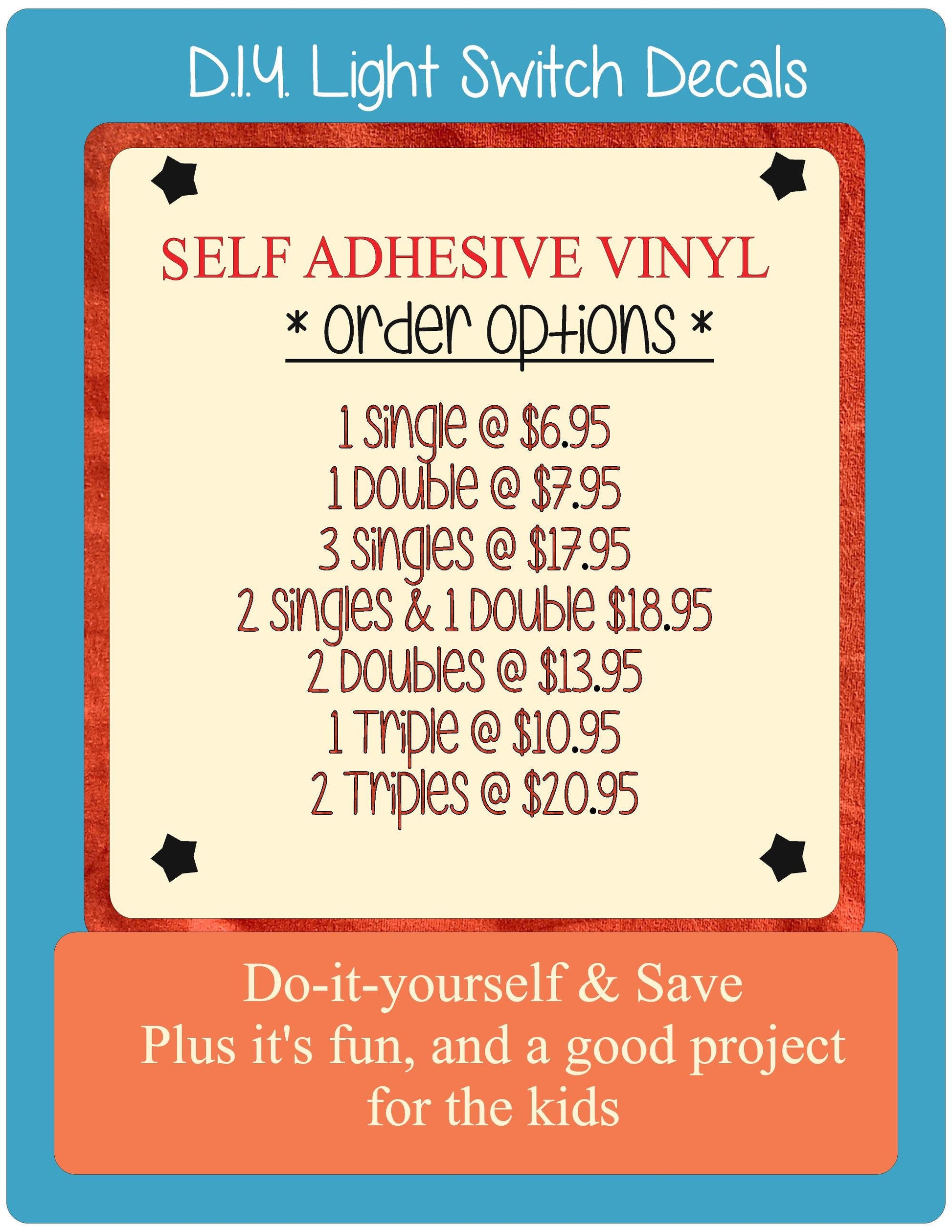 A quick and easy vinyl decal sized for a switchplate, for single size and a double.