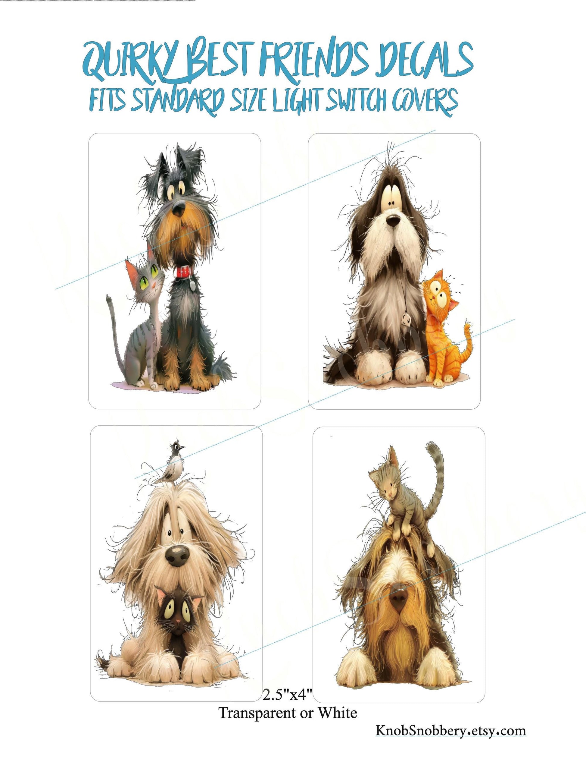 Quirky Best Friends Decals – 4 Funny Pet Decals for Light Switches, Laptops, Tumblers, Notebooks – Easy Peel-and-Stick Vinyl Sticker Set