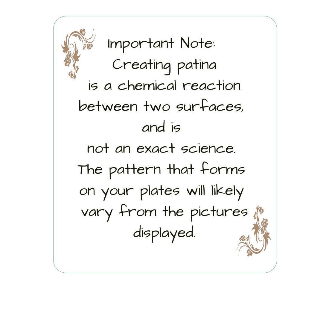 The oxidation process that creates the blue/green patina is a natural chemical reaction. While we can control the materials used, the final patina pattern will vary, resulting in unique variations in color and texture. Each piece is a testament to the beauty of this organic process.
